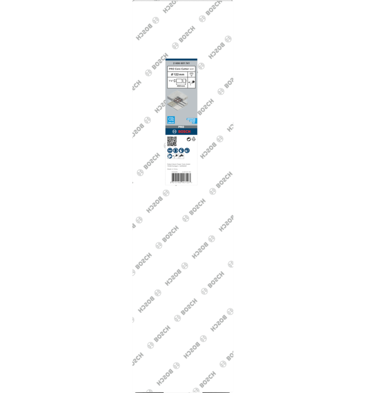 ბეტონის ალმასის საბურღი სტანდარტი საშუალებას იძლევა ბირთვის ბურღვა რკინაბეტონში მაღალი სიჩქარით. ეს საბურღი განკუთვნილია რკინაბეტონში ნახვრეტებისთვის სველი ბურღებით. 122, სამუშაო სიგრძე მმ: 450, სეგმენტების რაოდენობა: 5, სეგმენტის სიმაღლე მმ: 10.0