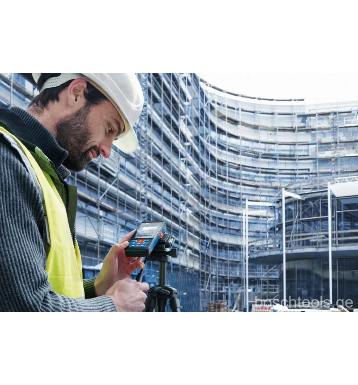 ამ მძლავრ გარე ლაზერულ საზომს აქვს ციფრული კამერის მნახველი, მასშტაბირების ფუნქციით 150 მ-მდე მანძილის ზუსტად გაზომვისთვის. გაზომვები და სურათები ავტომატურად შეინახება და ადვილად იკითხება დიდი, მაღალი კონტრასტული 2.8" IPS ფერადი დისპლეის წყალობით, რომელიც ბრუნავს პორტრეტსა და ლანდშაფტის ხედს შორის. მოსახერხებელი დოკუმენტაციისთვის, ყველა მონაცემი შეიძლება გადაიცეს Bluetooth-ით Bosch MeasureOn აპლიკაციაში ან USB-ის საშუალებით. კავშირი კომპიუტერთან IP54 დაცვით, ნაკაწრებისადმი მდგრადი მინისა და მომხმარებლისთვის მოსახერხებელი ინტერფეისით, ეს ლაზერული საზომი მოსახერხებელია. მომთხოვნი სამუშაო ადგილები.